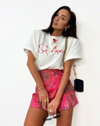 Stylowy T-shirt oversize od La Milla z napisem „So luxe!” i uroczą kokardką przy dekolcie 🎀 Idealny do codziennych, kobiecych stylizacji – wygodny, a jednocześnie wyjątkowy 💕