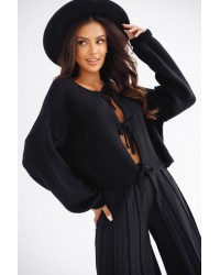 Miękki sweter z wiązaniem z przodu i szerokimi rękawami. Stylowy fason na chłodniejsze dni.