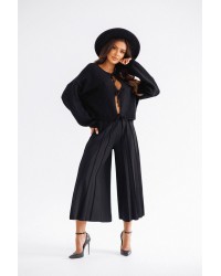 Kardigan z wiązaniem z przodu to idealna propozycja na jesienno-zimowe dni. Wykonany z miękkiej, przyjemnej w dotyku dzianiny, zapewnia komfort i ciepło przez cały dzień. Model posiada luźny, lekko oversize’owy krój z obniżoną linią ramion oraz szerokimi rękawami zakończonymi ściągaczem. Wiązanie z przodu nadaje całości dziewczęcego i oryginalnego charakteru. Sweter świetnie sprawdzi się zarówno w codziennych stylizacjach z jeansami, jak i w bardziej kobiecych zestawach ze spódnicą. Uniwersalny i stylowy, pasuje na wiele okazji.