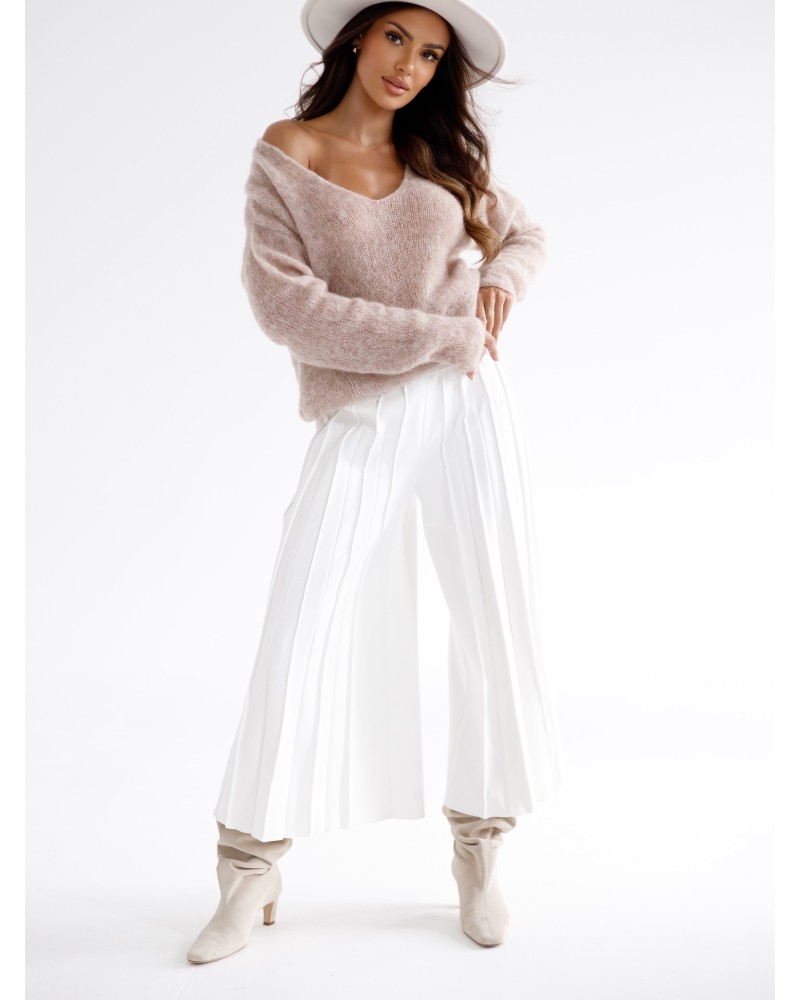 Miękki sweter z dekoltem w serek i długim rękawem. Idealny na chłodniejsze dni, zapewnia komfort i kobiecy wygląd.