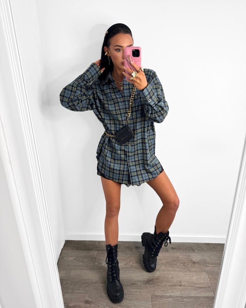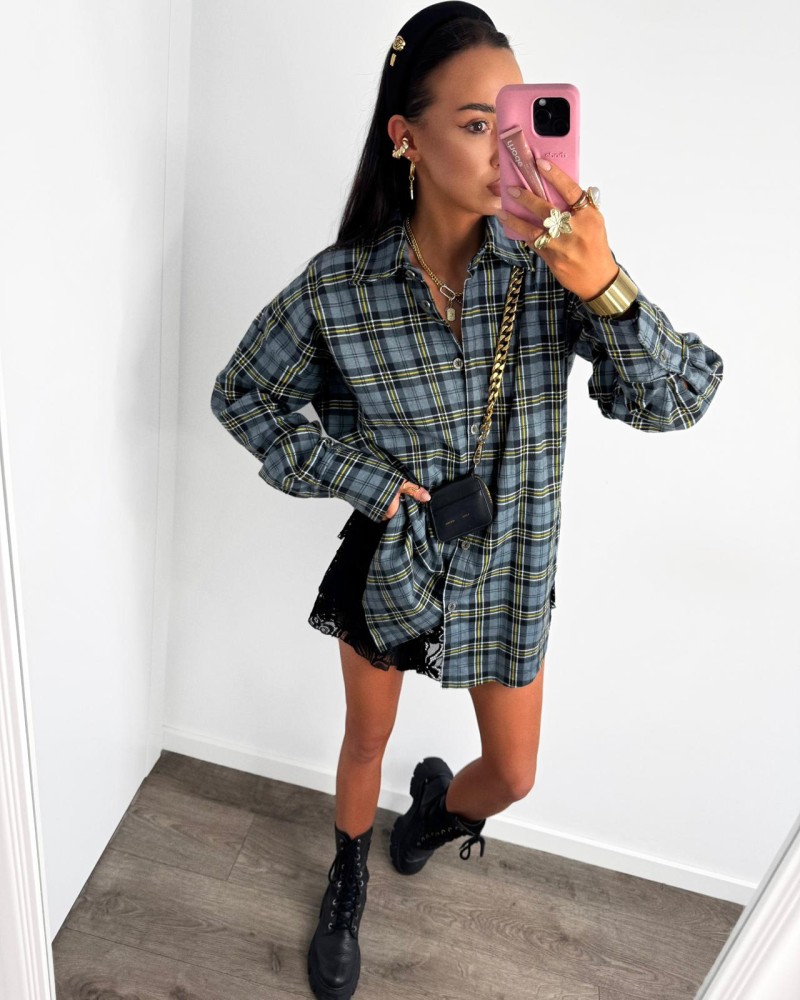 Koszula flanelowa w kratę to ponadczasowy element garderoby, który nigdy nie wychodzi z mody. Wykonana z miękkiej, przyjemnej w dotyku tkaniny, zapewnia komfort noszenia i świetnie prezentuje się w różnych stylizacjach – od luźnych, codziennych po bardziej kobiece, gdy zestawiona jest z koronką czy dopasowaną spódnicą. Dłuższy krój pozwala nosić ją zarówno jako klasyczną koszulę, jak i lekką narzutkę. Kratka w odcieniach zieleni i granatu dodaje charakteru i sprawia, że całość wygląda nowocześnie i stylowo.