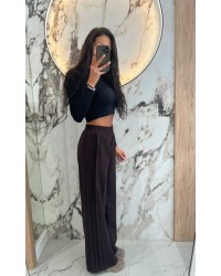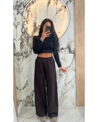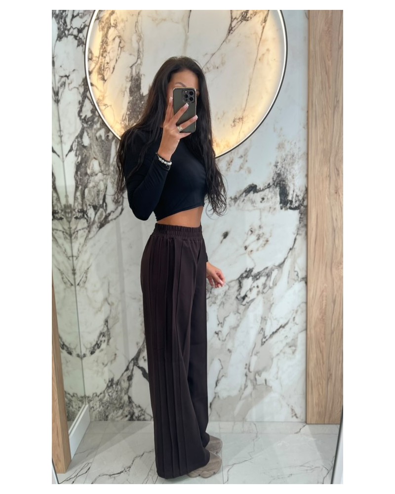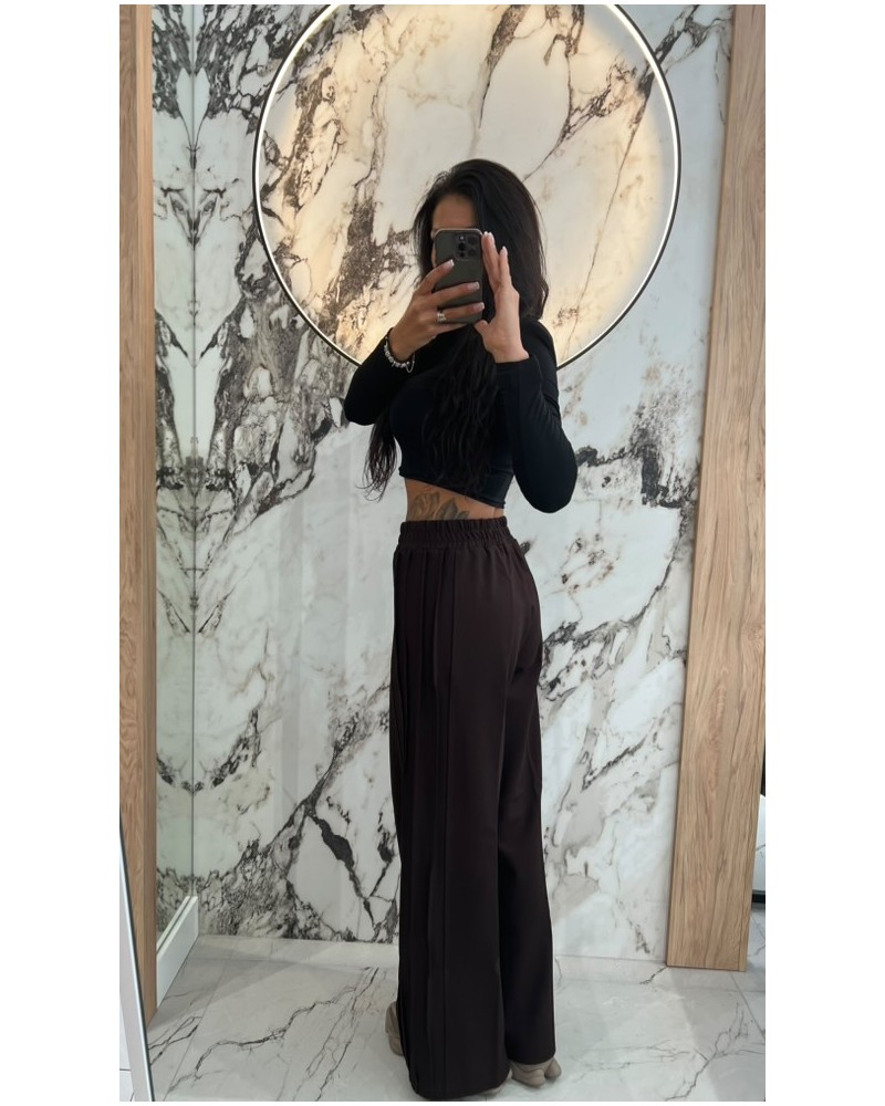 Spodnie materiałowe o swobodnym kroju to połączenie komfortu z nowoczesnym designem. Wysoki stan z elastycznym pasem doskonale dopasowuje się do sylwetki, podkreślając talię i jednocześnie zapewniając wygodę podczas noszenia. Luźne nogawki nadają całości lekkości i sprawiają, że spodnie świetnie komponują się zarówno z krótkimi topami, jak i oversize’owymi bluzami czy koszulkami. Wykonane z miękkiego, przyjemnego w dotyku materiału, stanowią idealny wybór zarówno do codziennych aktywności, jak i bardziej casualowych stylizacji. To must-have w garderobie każdej kobiety, która ceni sportową elegancję i wygodę w najlepszym wydaniu.