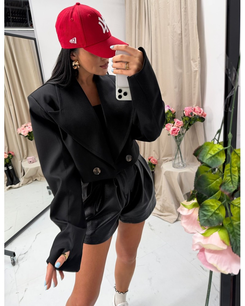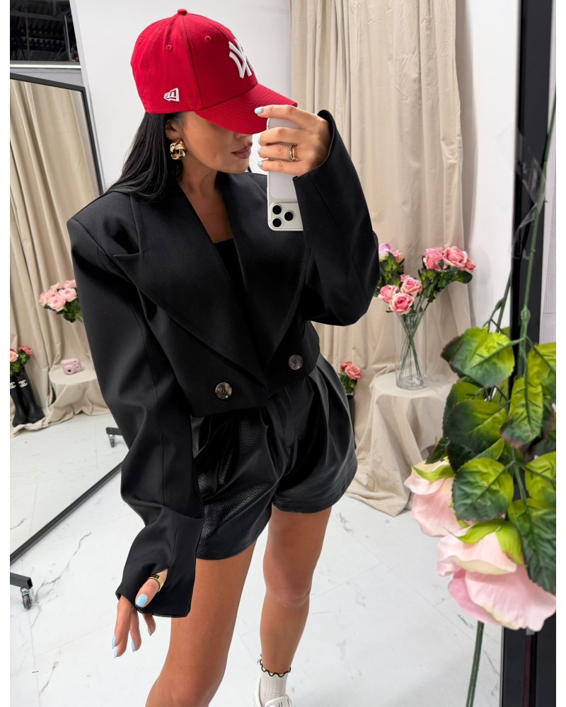Spodenki z ekoskóry z wysokim stanem i regulacją w pasie na guzik, które łączą wygodę ze stylowym designem.