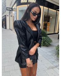 Sukienka marynarkowa to model, który doskonale podkreśla sylwetkę i nadaje stylizacji wyjątkowego charakteru. Wykonana z wysokiej jakości materiału imitującego skórę, zachwyca swoją strukturą i starannym wykończeniem. Fason z zaznaczonymi ramionami i paskiem w talii pięknie modeluje proporcje, nadając całości eleganckiego, a zarazem wyrazistego wyglądu. Sukienka sprawdzi się zarówno na wieczorne wyjścia, jak i w odważnych stylizacjach codziennych, gdzie może zastąpić klasyczną marynarkę. To propozycja dla kobiet, które cenią modę premium, oryginalne detale i niebanalne rozwiązania.