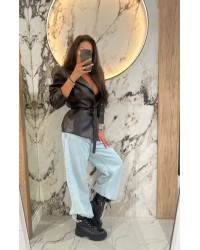 Sukienka marynarkowa to model, który doskonale podkreśla sylwetkę i nadaje stylizacji wyjątkowego charakteru. Wykonana z wysokiej jakości materiału imitującego skórę, zachwyca swoją strukturą i starannym wykończeniem. Fason z zaznaczonymi ramionami i paskiem w talii pięknie modeluje proporcje, nadając całości eleganckiego, a zarazem wyrazistego wyglądu. Sukienka sprawdzi się zarówno na wieczorne wyjścia, jak i w odważnych stylizacjach codziennych, gdzie może zastąpić klasyczną marynarkę. To propozycja dla kobiet, które cenią modę premium, oryginalne detale i niebanalne rozwiązania.