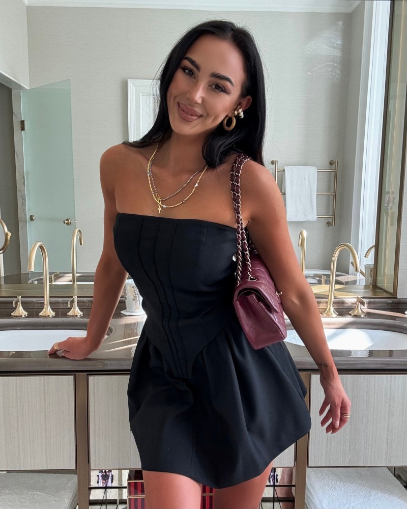 Stylowy gorset o dopasowanym kroju, który pięknie podkreśla sylwetkę i dodaje elegancji każdej stylizacji.