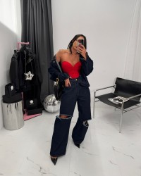 Modne jeansy damskie z wysokim stanem i przetarciami na kolanach to połączenie wygody, stylu i miejskiego charakteru. Luźny krój typu wide leg zapewnia swobodę ruchów i świetnie prezentuje się na każdej sylwetce. Wykonane z wysokiej jakości, lekko spranego denimu, spodnie idealnie wpisują się w aktualne trendy streetwearowe. Przetarcia dodają całości nonszalancji, a klasyczny niebieski odcień denimu pozwala na wiele możliwości stylizacji – od sportowych po casualowe zestawy. Idealne na co dzień, do sneakersów, crop topów, T-shirtów i oversize’owych kurtek.