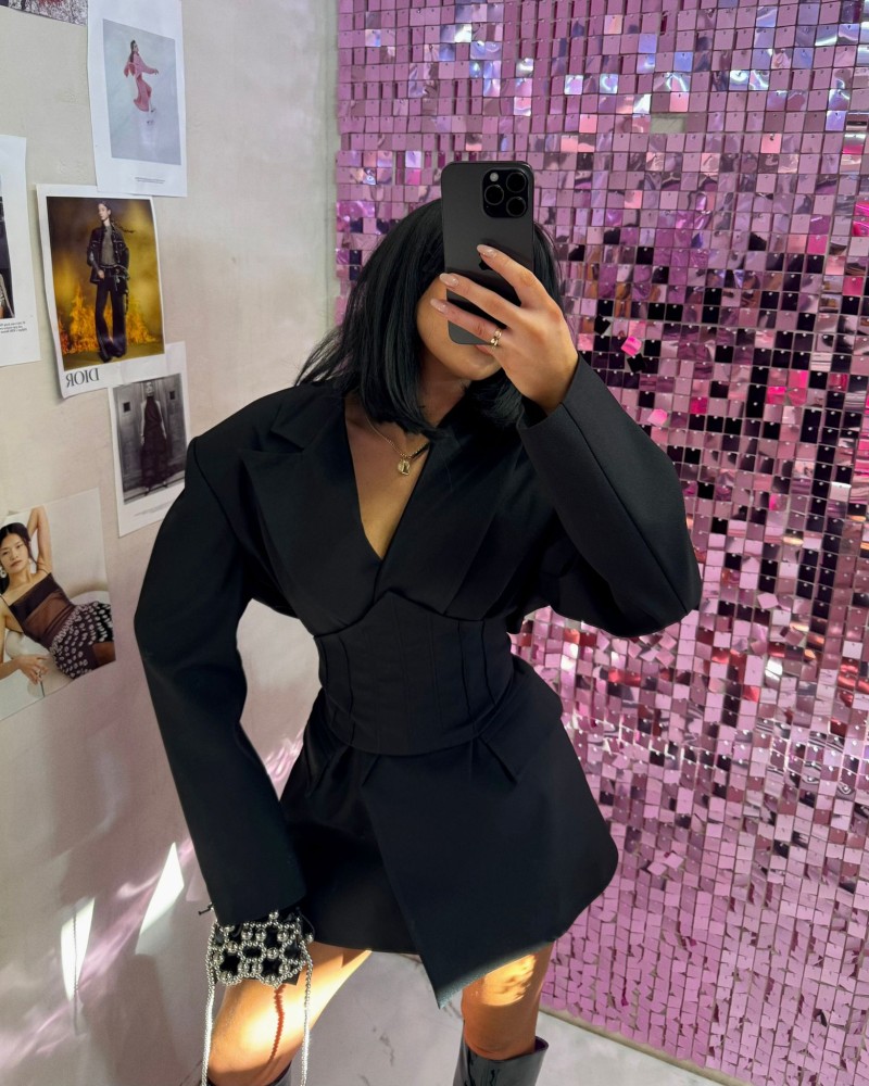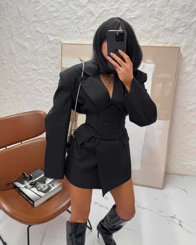 Marynarka z gorsetem o luźnym kroju, która łączy elegancję z casualowym stylem. Idealna do codziennych i wieczorowych stylizacji.