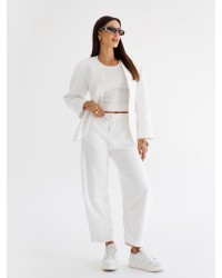 Marynarka typu blazer to idealne połączenie klasyki i nowoczesności. Wykonana z miękkiego, elastycznego materiału, zapewnia komfort noszenia przez cały dzień, jednocześnie zachowując elegancki wygląd. Model pozbawiony tradycyjnych klap i zapięcia prezentuje minimalistyczny design, który wpisuje się w aktualne trendy. Subtelne przeszycia modelujące sylwetkę, naszywane kieszenie i lekko taliowany krój podkreślają kobiecą figurę. Marynarka doskonale sprawdzi się zarówno w casualowych stylizacjach z jeansami czy dresami, jak i w bardziej eleganckim zestawie z materiałowymi spodniami lub spódnicą. To must-have w szafie każdej kobiety, która ceni styl i wygodę w jednym.