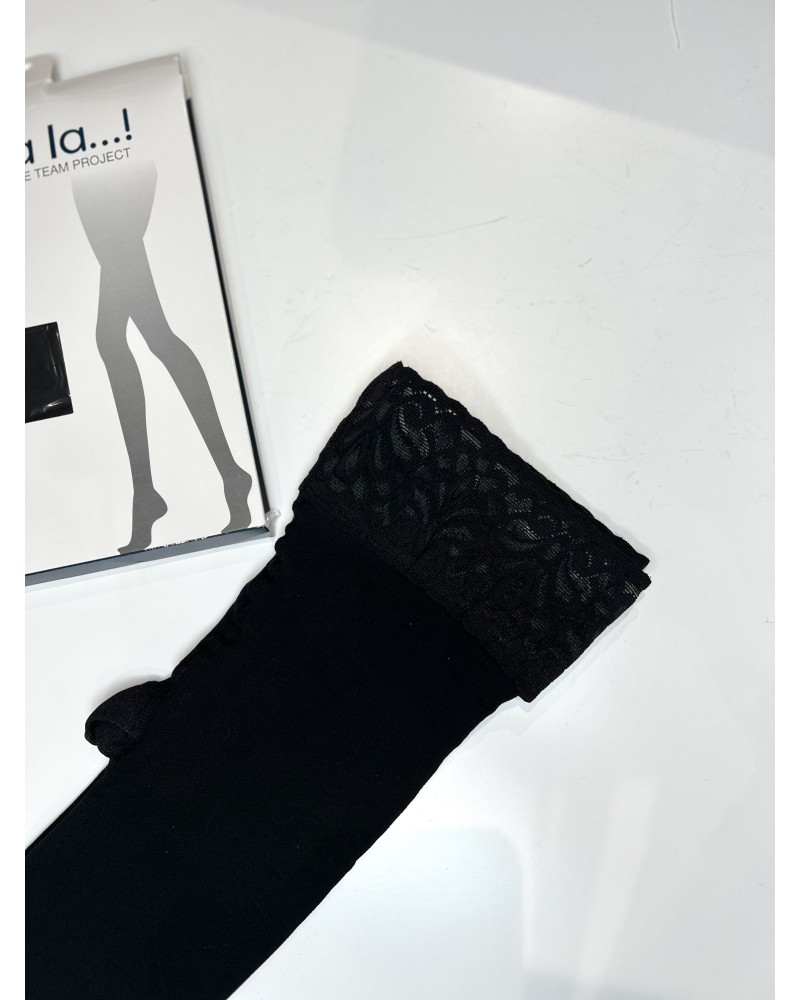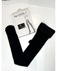 Rajstopy By o la la...! wykończone w pasie ozdobną koronką.