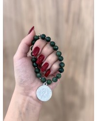 Bransoletka z zielonego jadeitu By o la la...! ze srebrną monetą
