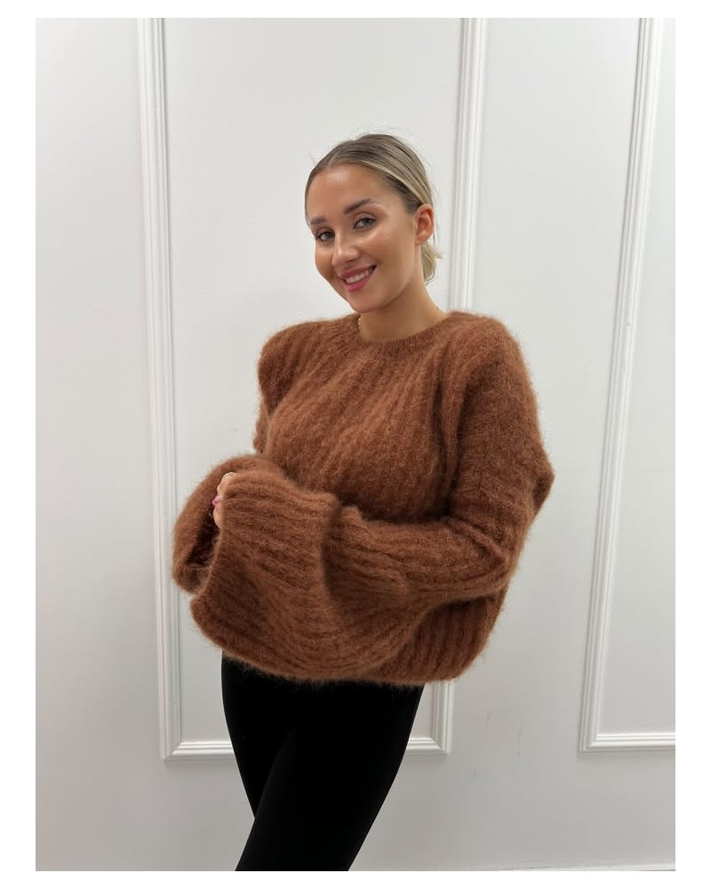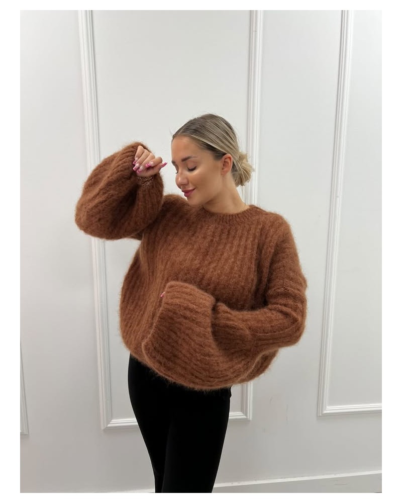 Elegancki, miękki kardigan o krótszym kroju, wykonany z puszystej dzianiny o lekkim włosiu. Luźne rękawy zakończone lekkim ściągaczem dodają swobody i kobiecego charakteru. Idealny do noszenia solo lub w warstwowych stylizacjach – świetnie wygląda zarówno z eleganckimi spodniami, jak i z jeansami. To ponadczasowy element garderoby, który sprawdzi się w chłodniejsze dni.