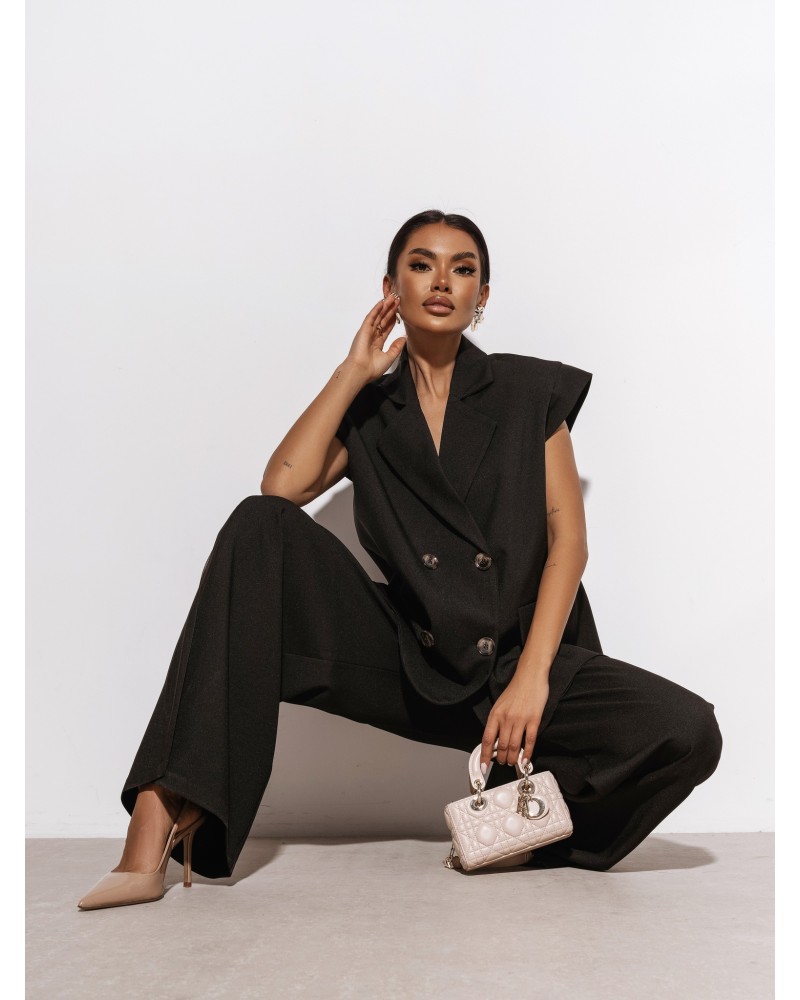 Dwurzędowa kamizelka garniturowa o luźnym kroju z wyrazistymi ramionami. Idealna do stylizacji casualowych i eleganckich.