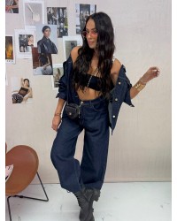 Jeansowa katana o oversize’owym kroju z kieszeniami i metalowymi guzikami. Idealna do casualowych stylizacji na co dzień.
