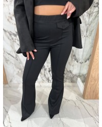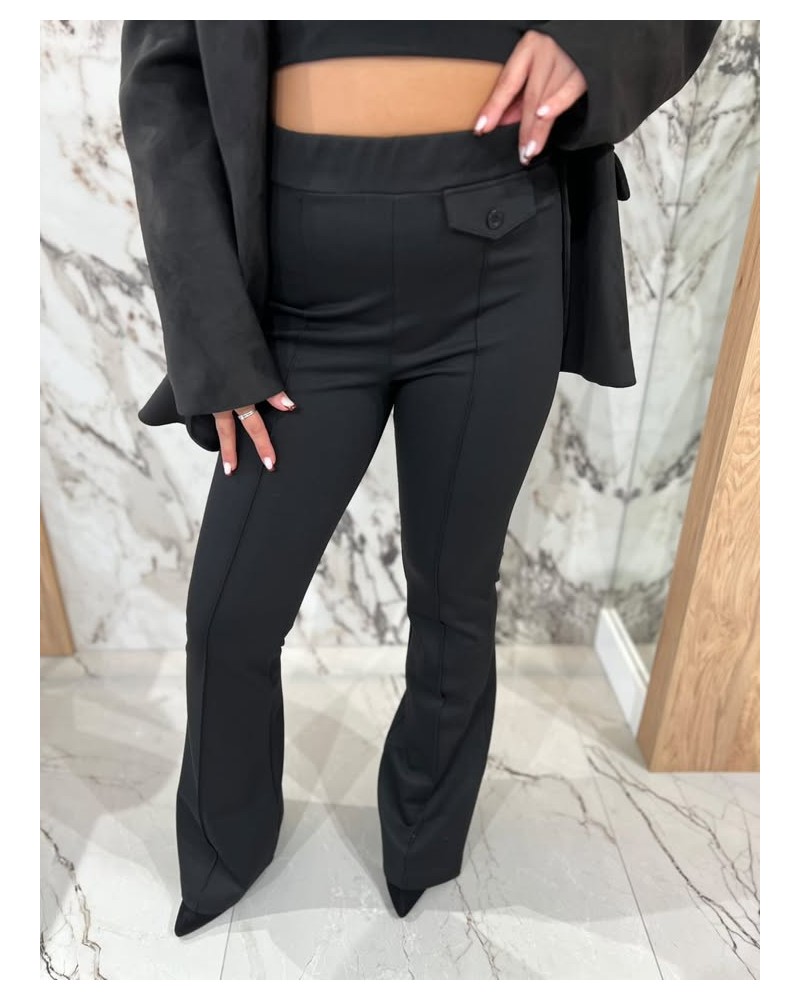 Eleganckie legginsy z lekko rozszerzaną nogawką, ozdobną zakładką i guzikiem. Idealne do stylizacji biurowych i casualowych.