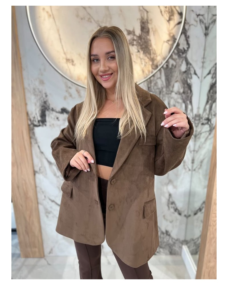 Marynarka o ponadczasowym fasonie wykonana z przyjemnego w dotyku materiału, który gwarantuje komfort noszenia i estetyczny wygląd. Model zapinany na dwa guziki, z klasycznym kołnierzem i praktycznymi kieszeniami z klapkami. Idealnie sprawdzi się zarówno w codziennych stylizacjach, jak i jako uzupełnienie eleganckiego looku. Świetnie komponuje się z jeansami, spodniami materiałowymi czy sukienkami. Doskonała propozycja dla kobiet ceniących uniwersalne i stylowe rozwiązania.
