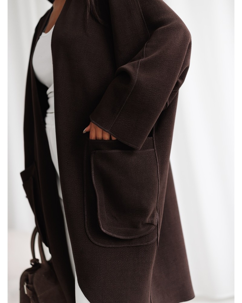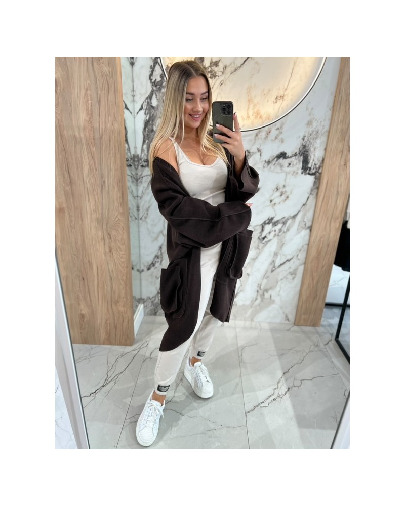 Luźny kardigan z wygodnymi kieszeniami i minimalistycznym designem. Idealny wybór na chłodniejsze dni.