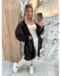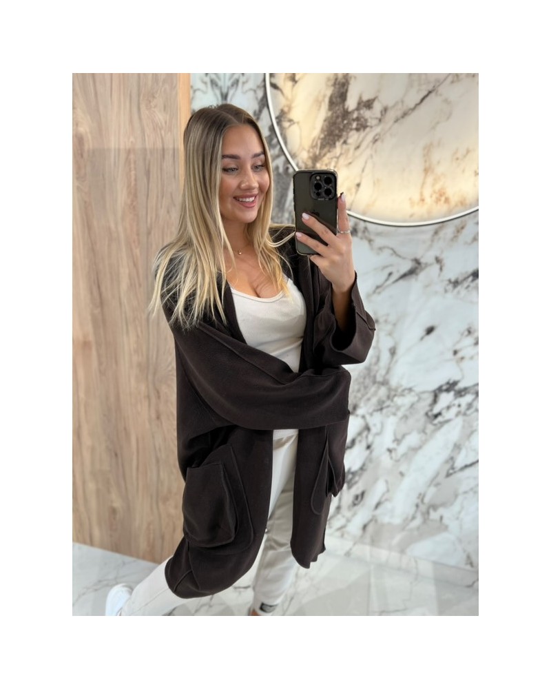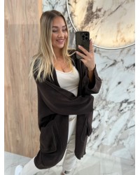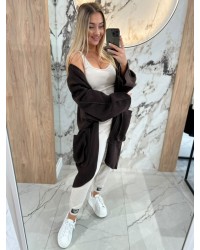 Stylowy i praktyczny kardigan o oversizowym kroju, który łączy wygodę z nowoczesnym wyglądem. Wykonany z miękkiego, elastycznego materiału zapewnia komfort noszenia i swobodę ruchów. Długie rękawy i długość za biodra sprawiają, że model doskonale sprawdza się jako narzutka na co dzień, do pracy czy podczas weekendowego relaksu. Wyposażony w funkcjonalne kieszenie i wykończony bez zapięcia, dzięki czemu można go swobodnie zarzucić na każdą stylizację. Świetnie komponuje się zarówno ze spodniami, jak i sukienkami. Niezastąpiony element garderoby na sezon przejściowy.