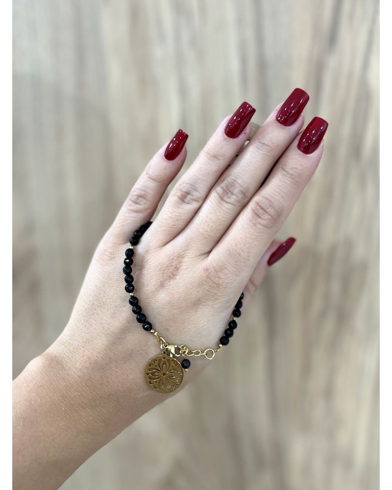 Bransoletka czarny kwiatek By o la la...! ze złotem