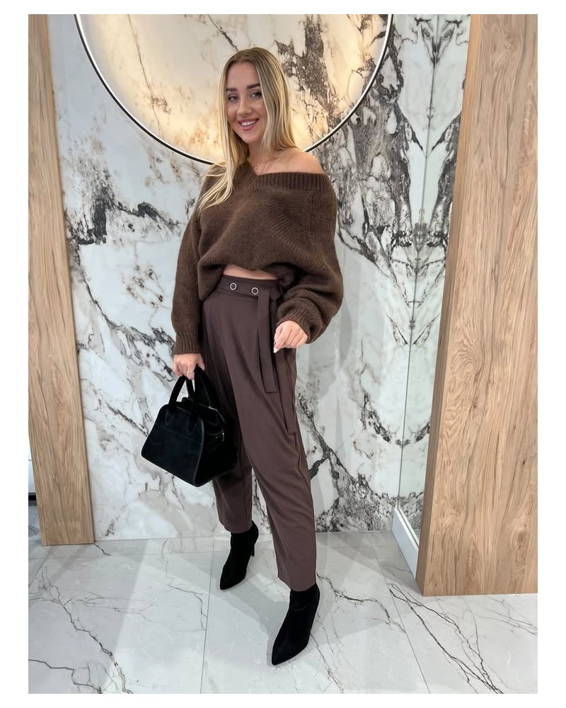 Stylowe, wygodne spodnie z ozdobnym detalem w pasie to idealna propozycja do codziennych i bardziej eleganckich stylizacji.