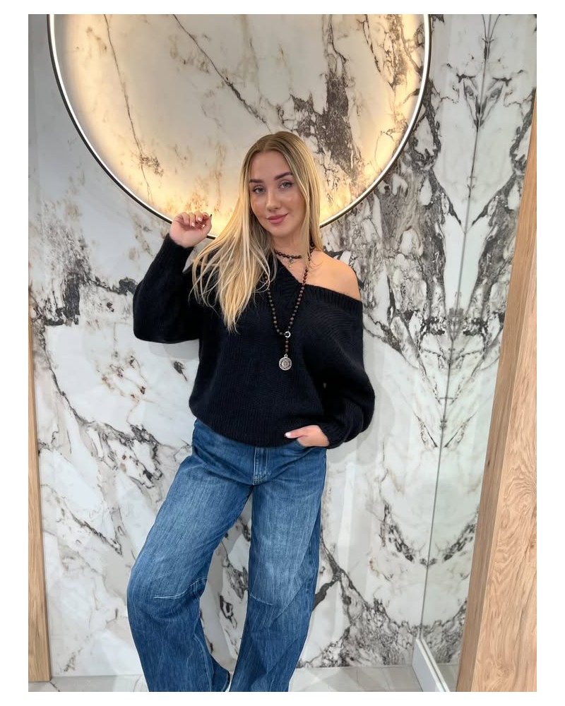 Sweter moherowy w szpic By o la la...! czarny