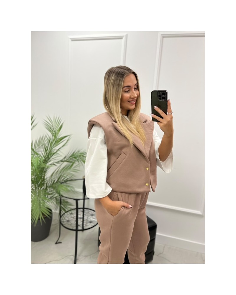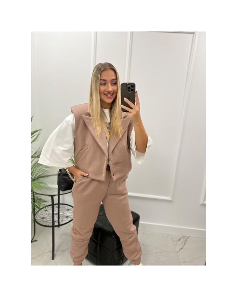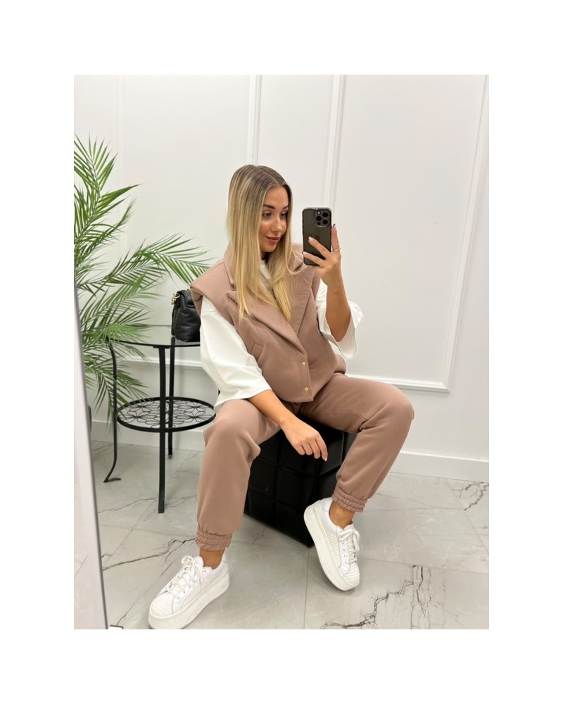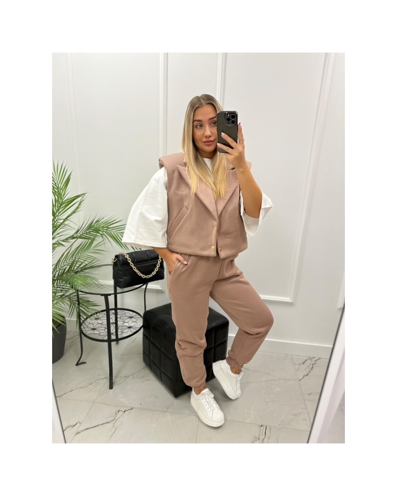 Komplet dresowy z dresową kamizelką i spodniami ze ściągaczami.  Idealny na co dzień i do stylizacji w duchu streetwear.