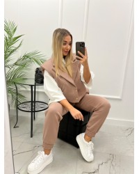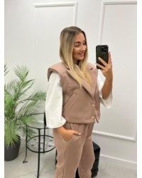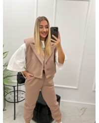 Stylowy komplet dresowy składający się z oversize’owej kamizelki  oraz  spodni ze ściągaczem z elastyczną talią. Komfortowy krój zapewnia pełną swobodę ruchów, a modna forma zestawu wpisuje się w najnowsze trendy. Dres doskonale sprawdzi się zarówno w domowym zaciszu, jak i w miejskich stylizacjach — zestaw go z ulubionymi sneakersami i dodatkami, by stworzyć modny, casualowy look. Wysokiej jakości materiał gwarantuje wygodę przez cały dzień.