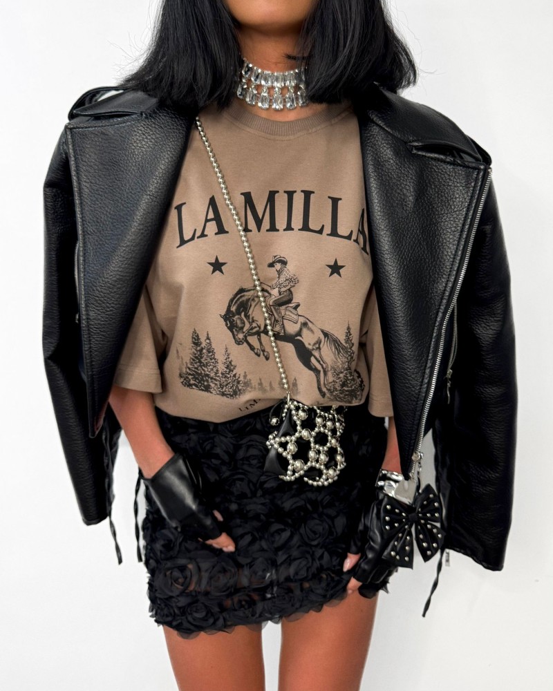Oversize’owy t-shirt z unikalnym nadrukiem La Milla – połączenie komfortu i modowego charakteru.