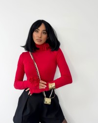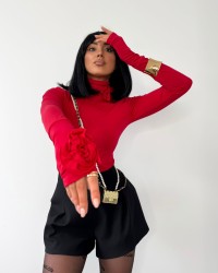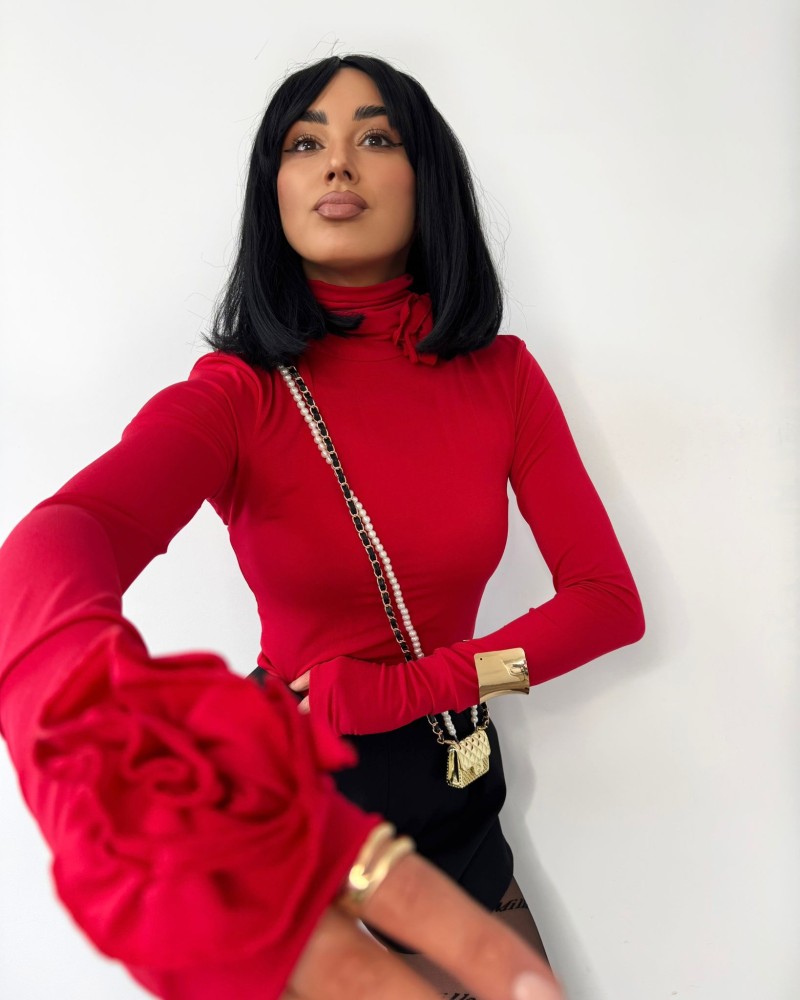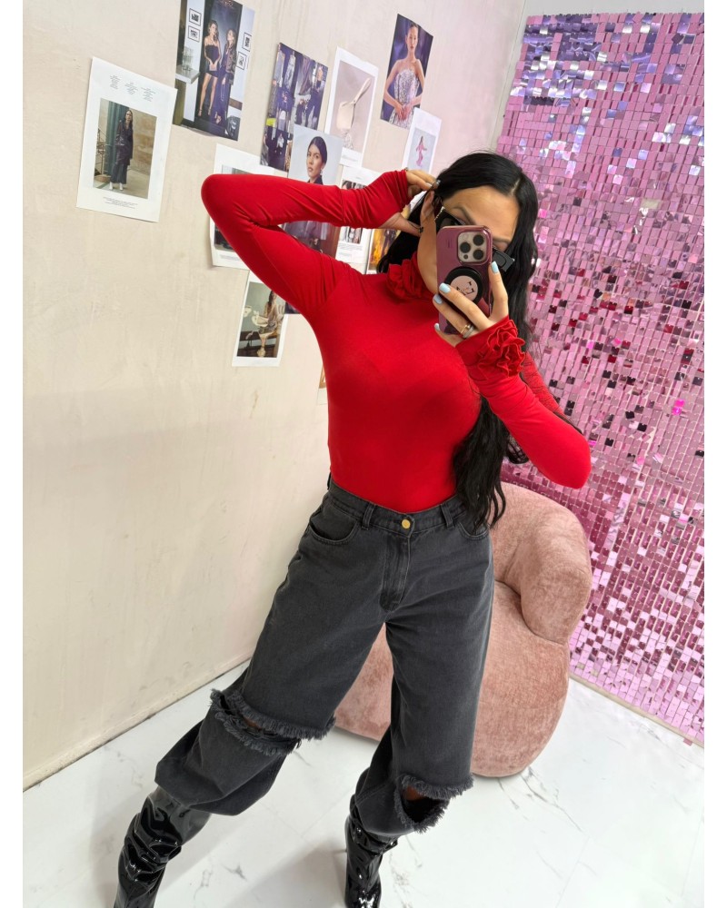 Stylowe body z długim rękawem to połączenie elegancji i wyrazistego detalu. Model wyróżnia się dekoracyjnymi falbankami przy stójce oraz mankietach, które dodają całości subtelnej romantyczności. Elastyczny materiał idealnie dopasowuje się do sylwetki, zapewniając komfort noszenia przez cały dzień. Body świetnie sprawdzi się zarówno w stylizacjach casualowych, jak i bardziej formalnych – zestaw je z jeansami, spódnicą lub spodniami z wysokim stanem.