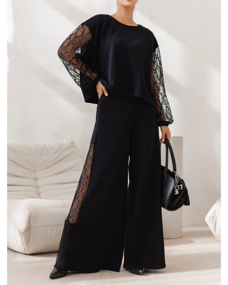 Stylowa bluza z delikatnymi, transparentnymi rękawami z koronki. Luźny fason zapewnia komfort i elegancki wygląd na co dzień i specjalne okazje.