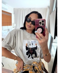 Luźny T-shirt z graficznym nadrukiem z przodu. Idealny na co dzień – wygodny fason i modny akcent w stylizacjach casualowych.
