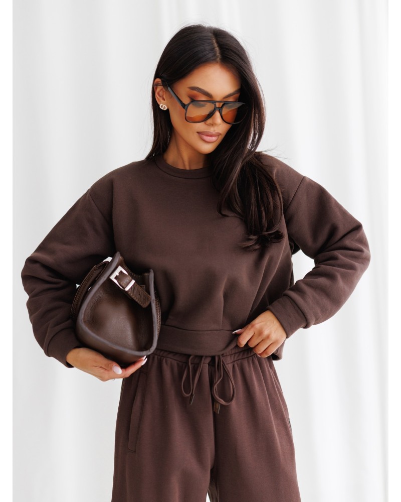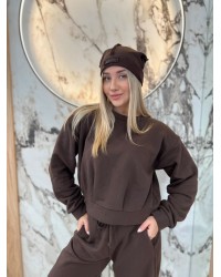 Ta minimalistyczna bluza to uniwersalny element garderoby, który łączy wygodę z subtelnym detalem. Model posiada klasyczny, prosty fason z okrągłym dekoltem i delikatnie obniżoną linią ramion, co nadaje mu swobodnego charakteru. Dół bluzy został ozdobiony subtelnymi zakładkami, które wprowadzają lekkość i urozmaicają prostą formę.