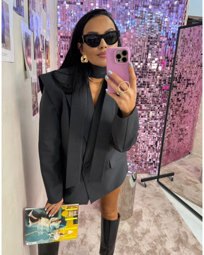 Marynarka wiązana La Milla to niezbędny element garderoby, który sprawdzi się w każdej sytuacji. Jej klasyczna forma z nowoczesnym paskiem w talii doskonale modeluje sylwetkę, dodając jej elegancji i wyrafinowania. Wysokiej jakości materiał gwarantuje komfort noszenia i trwałość. Czarna marynarka La Milla to doskonała baza do wielu stylizacji — od biurowych po wieczorowe. Świetnie prezentuje się zarówno z jeansami, jak i eleganckimi spodniami czy spódnicami.