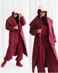 Otulająca kurtka typu kołdra to idealne połączenie funkcjonalności i modnego designu. Model bez zapięcia na guziki, wiązany w talii szerokim paskiem, który podkreśla sylwetkę i zapewnia wygodę noszenia. Posiada obszerny, miękki kołnierz, który tworzy efektowny kaptur – chroni przed zimnem i dodaje całości nowoczesnego charakteru. Długość za kolano i ciepłe wypełnienie sprawiają, że kurtka doskonale sprawdzi się w sezonie jesienno-zimowym. Świetny wybór dla kobiet ceniących komfort i styl w jednym.