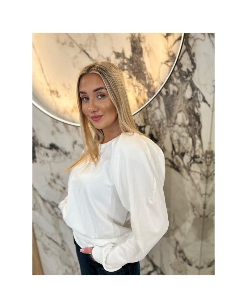 Bluza z długim rękawem i delikatnym marszczeniem na ramionach. Klasyczna forma z subtelnym detalem.