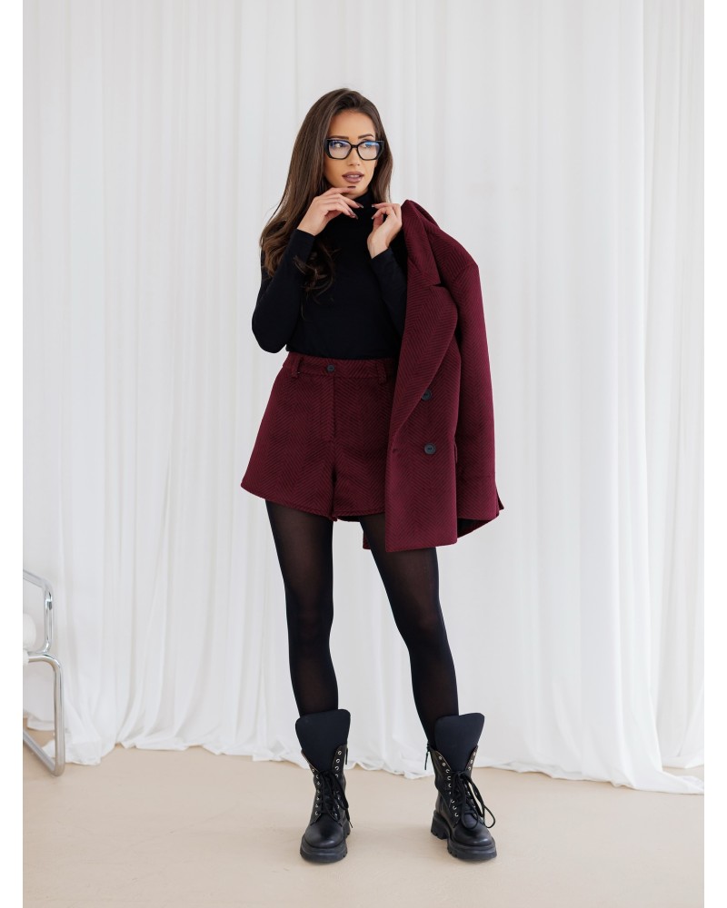 Stylowe szorty z modnym wzorem w jodełkę, idealne do eleganckich i codziennych stylizacji.