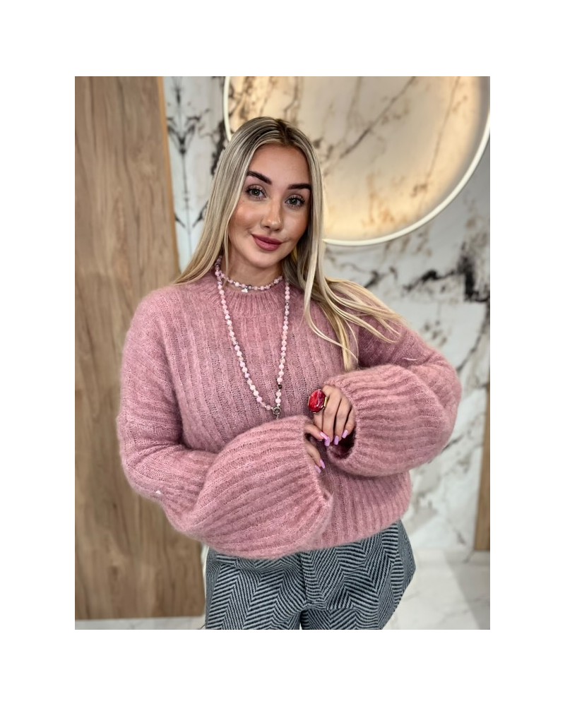 Puszysty sweter o luźnym kroju z bufiastymi rękawami – idealny na chłodne dni, wygodny i kobiecy.