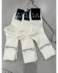 Skarpetki prążkowane z napisem La Milla śmietankowe