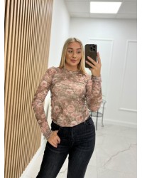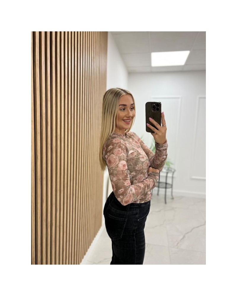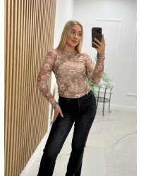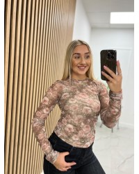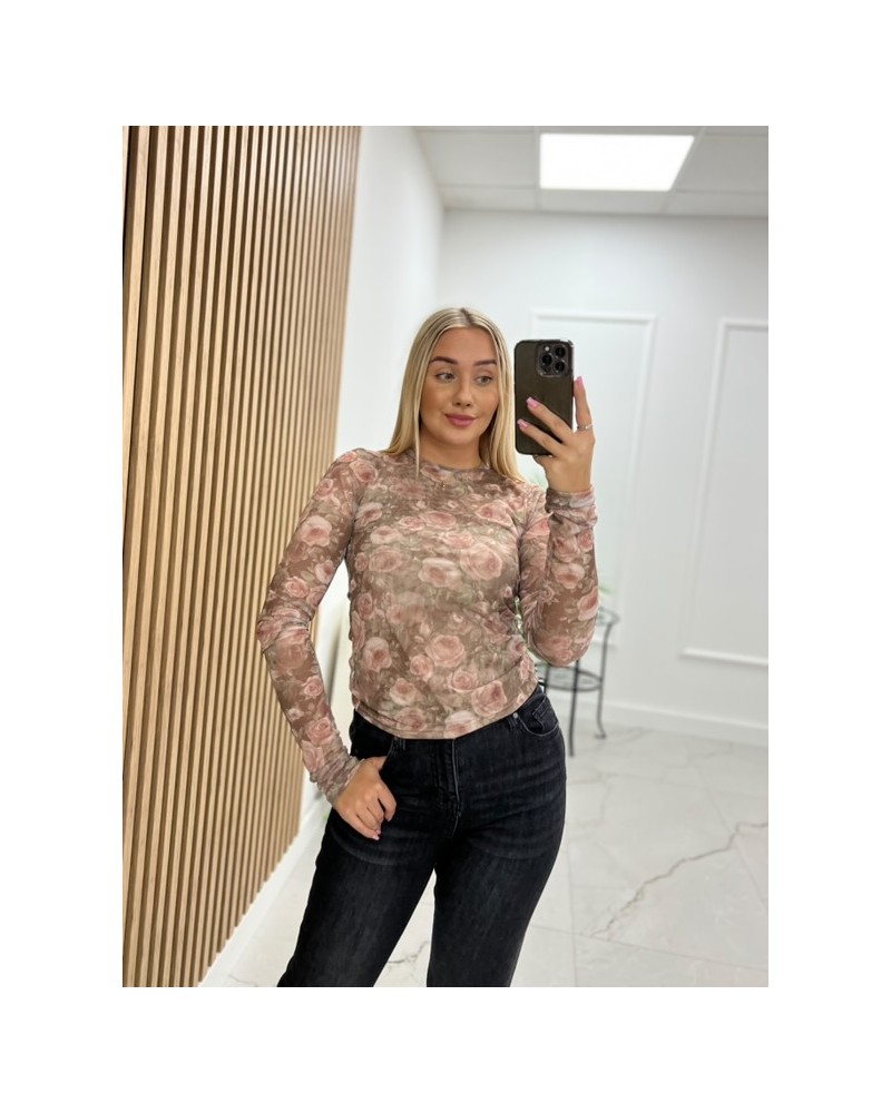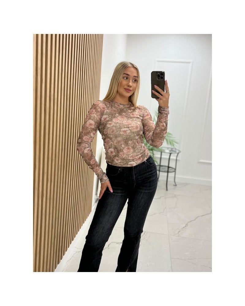 Przezroczysta bluzka z delikatnej siateczki w romantyczny kwiatowy wzór.