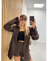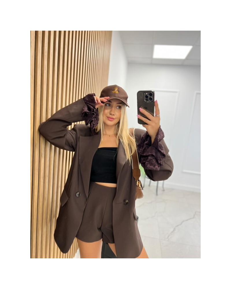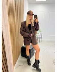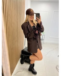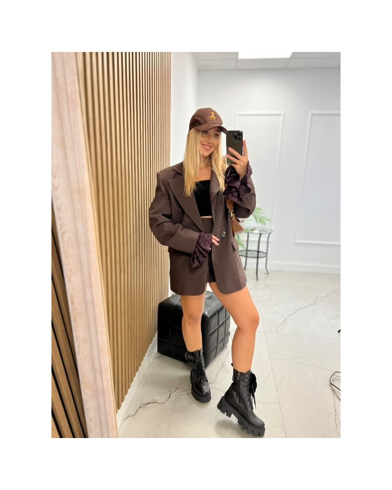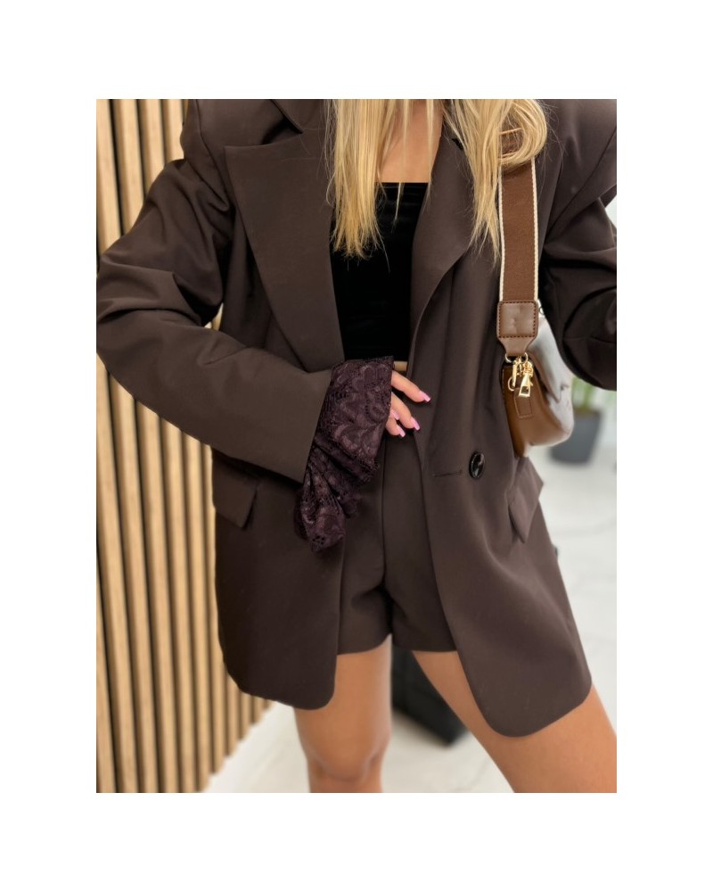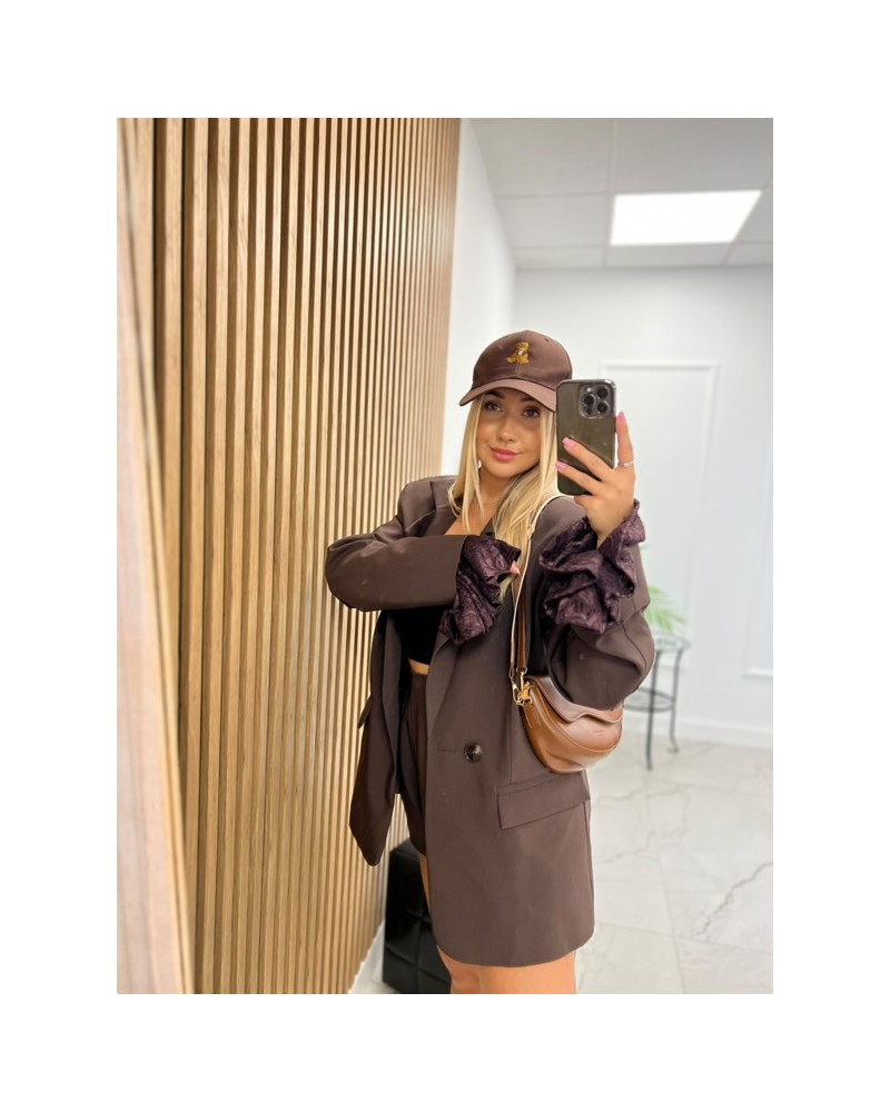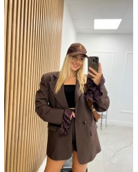 Marynarka o oversize’owym kroju w głębokim odcieniu czekolady. Stylowa i uniwersalna propozycja, która doda charakteru każdej stylizacji.