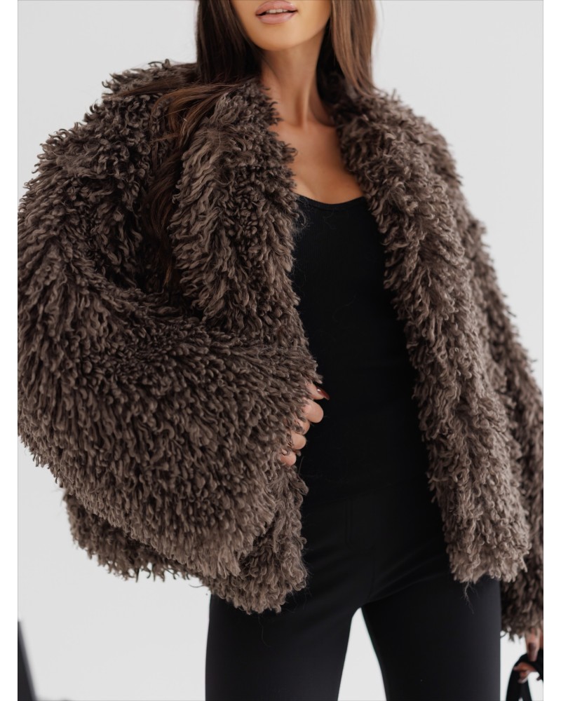 Ten krótki futrzak to połączenie elegancji i miejskiego stylu. Wykonany z wysokiej jakości, miękkiego sztucznego futra, zapewnia komfort i przyjemne ciepło w chłodniejsze dni. Jego lekko oversize’owy krój pięknie układa się na sylwetce, dodając całości nonszalancji i wyrafinowanego charakteru.