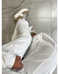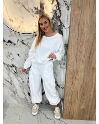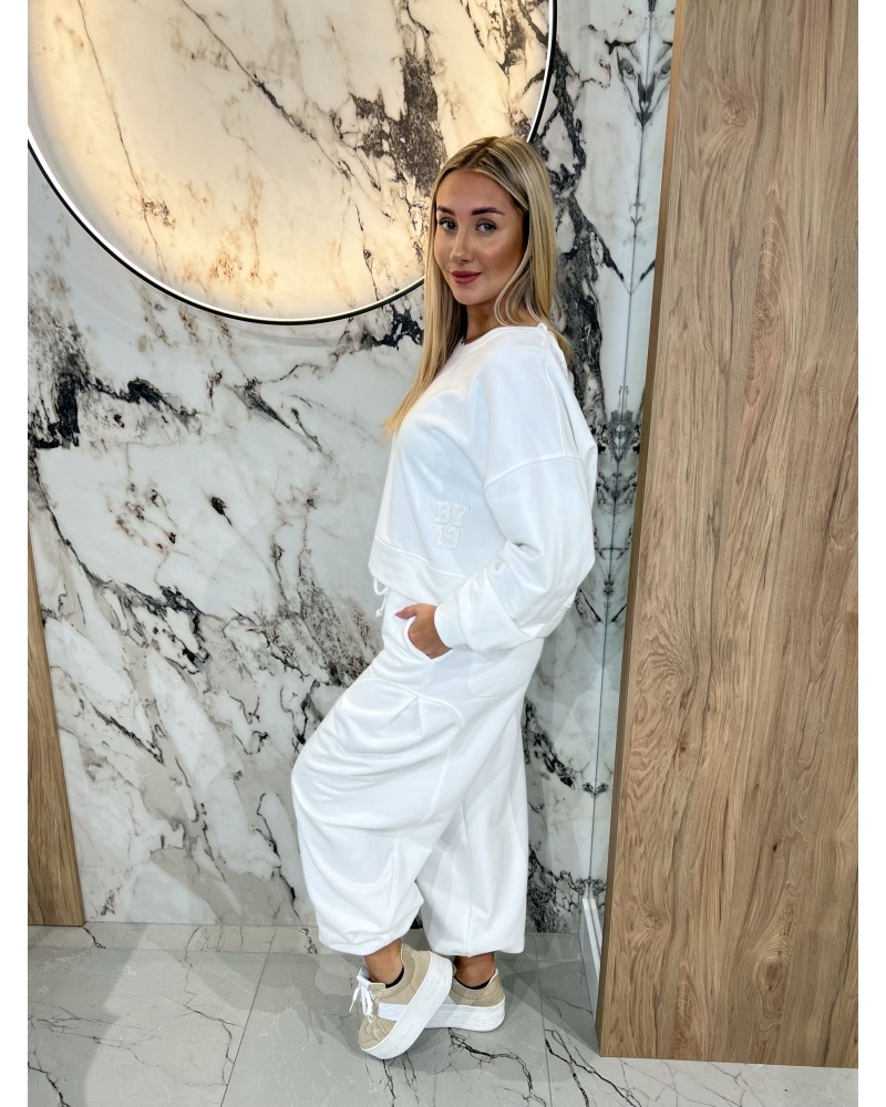 Spodnie dresowe z zakładką na nogawce By o la la...! śmietanowe