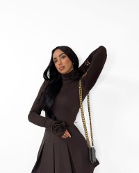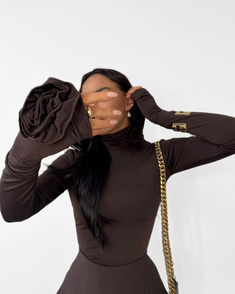 Golf z delikatnymi różami przy szyi i na rękawach to połączenie klasyki z subtelnym romantyzmem. Wykonany z miękkiego, elastycznego materiału, doskonale dopasowuje się do sylwetki, podkreślając kobiece kształty.