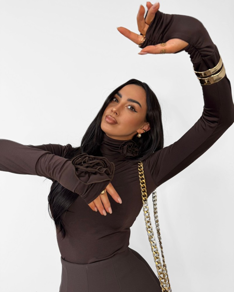 Golf z różami przy szyi i mankietach — kobiecy, elegancki i wyjątkowy.