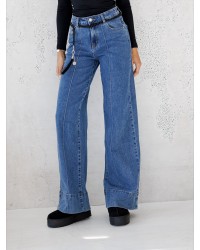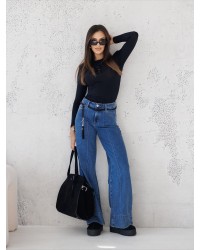 Jeansy z szeroką nogawką i przeszyciem – klasyka w nowoczesnym wydaniu, idealne na co dzień.
