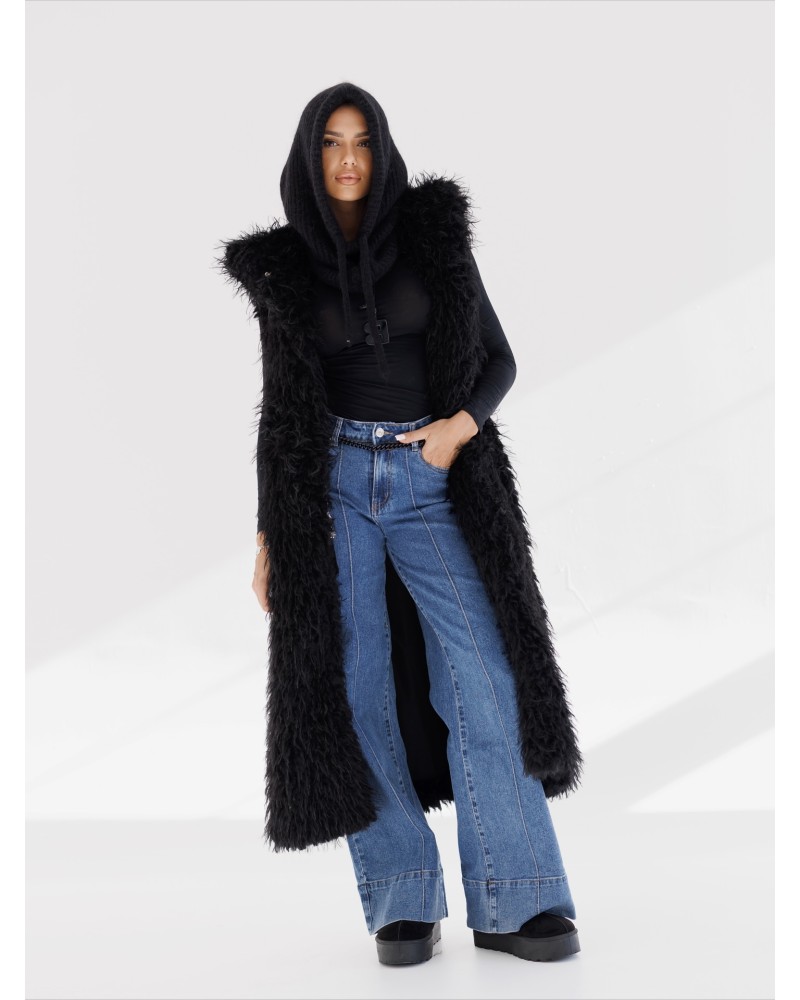 Stylowe jeansy z szeroką nogawką to must-have w każdej szafie! Wykonane z wysokiej jakości, nieco sztywniejszego denimu, zachowują kształt i świetnie podkreślają sylwetkę. Charakterystyczne przeszycie z przodu nogawek optycznie wydłuża nogi, nadając im smukły wygląd.