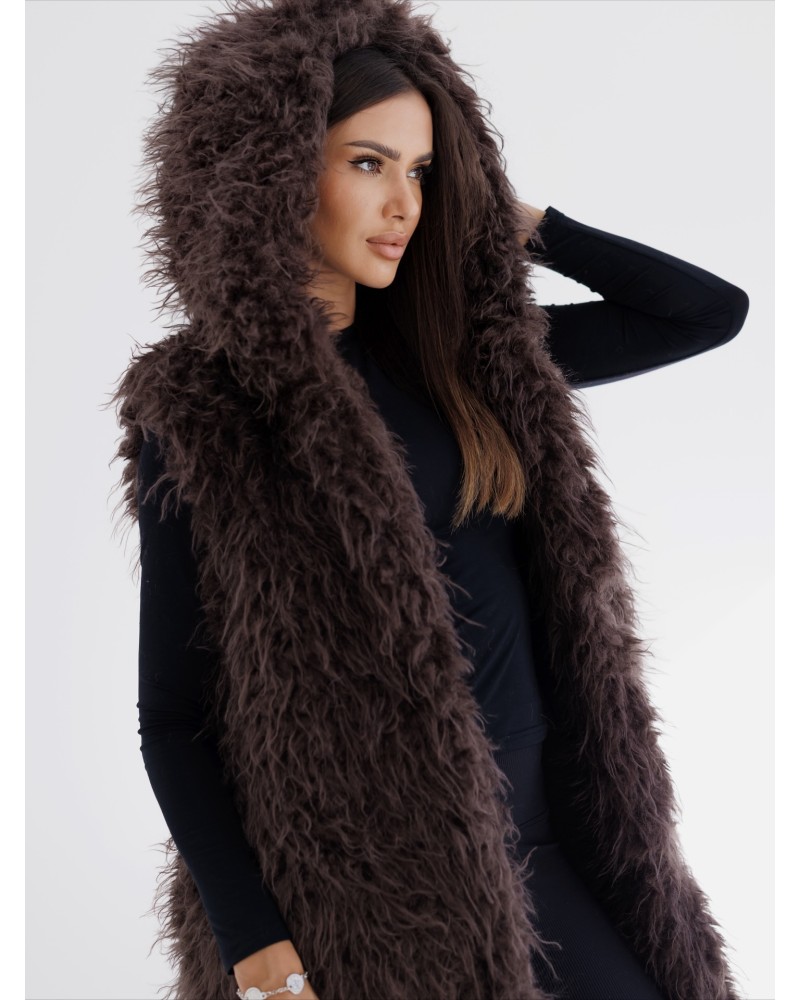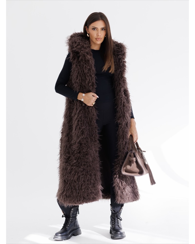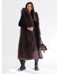 Elegancka kamizelka z długim, puszystym futerkiem to must have w garderobie każdej miłośniczki mody. Wykonana z miękkiego, przyjemnego w dotyku materiału, prezentuje się wyjątkowo stylowo, a jednocześnie zapewnia komfort i ciepło w chłodniejsze dni.