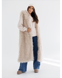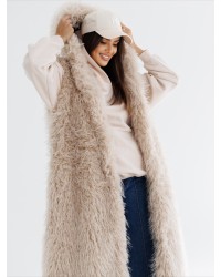 Elegancka kamizelka z długim, puszystym futerkiem to must have w garderobie każdej miłośniczki mody. Wykonana z miękkiego, przyjemnego w dotyku materiału, prezentuje się wyjątkowo stylowo, a jednocześnie zapewnia komfort i ciepło w chłodniejsze dni.