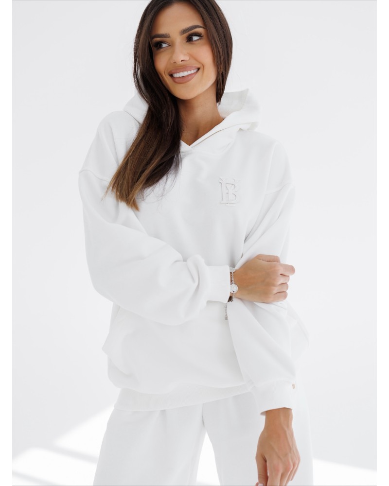 Bluza posiada praktyczny kaptur i dużą kieszeń z przodu, co nadaje jej sportowego, miejskiego charakteru. Subtelny haftowany detal z logo z przodu dodaje całości eleganckiego wykończenia.