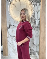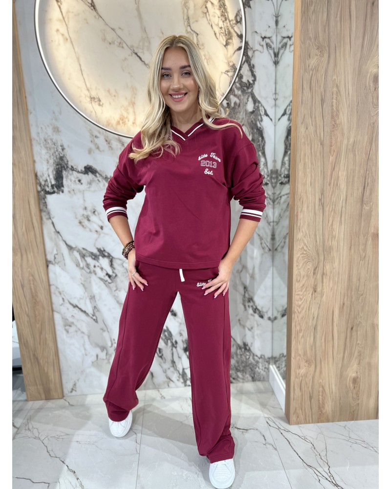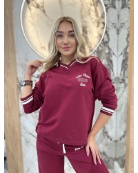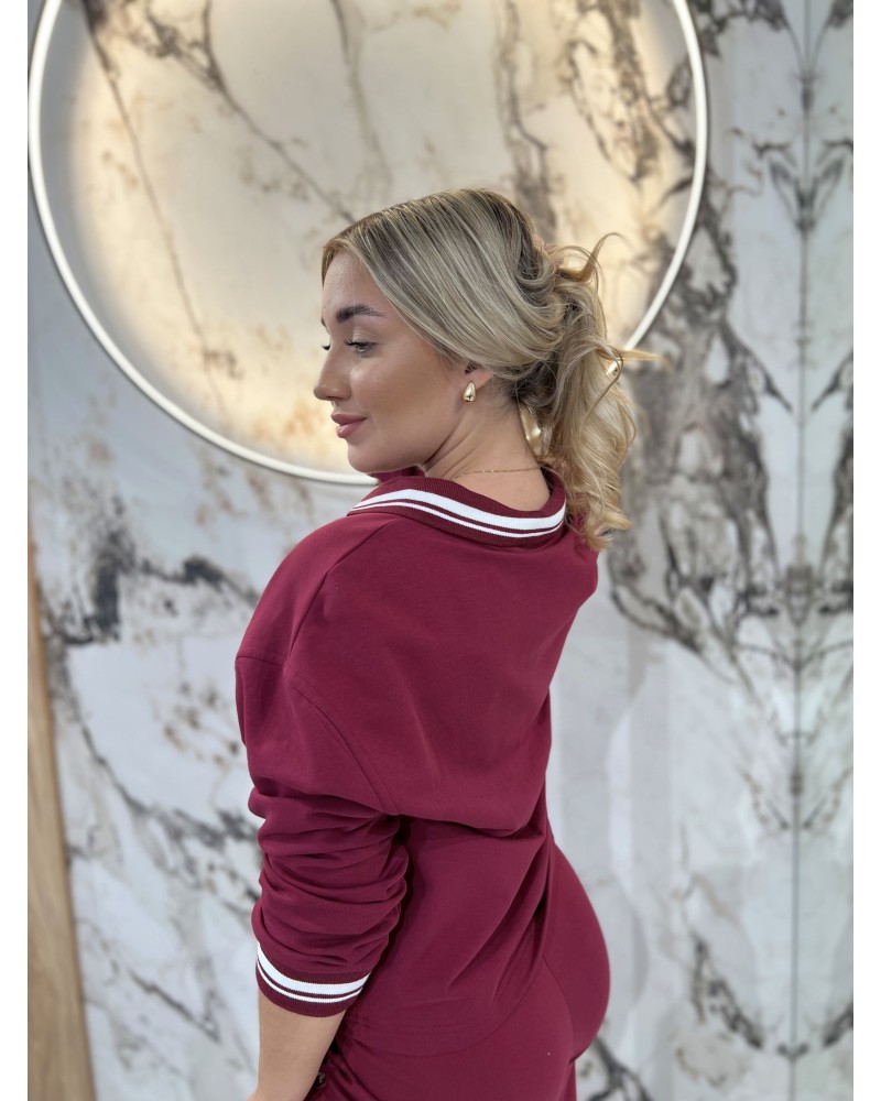 Stylowy komplet dresowy z kołnierzykiem w sportowym stylu. Wykonany z miękkiego, przyjemnego w dotyku materiału, zapewnia wygodę i swobodę ruchów. Idealny na co dzień, do podróży lub weekendowych stylizacji.